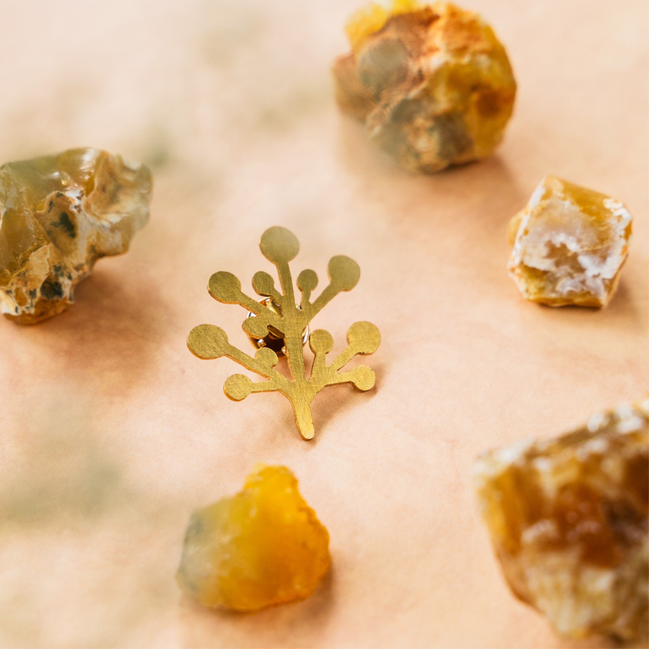 植物の美しさを身に着ける、ナチュラルな雰囲気漂うブローチです。真鍮板を手作業で切り抜いて作られているため、一つ一つが個性的で、他にはない独自の表情を持っています。植物をイメージしたデザインは、シンプルでありながらも存在感があり、普段のコーディネートのアクセントになること間違いなしです。真鍮特有の経年変化もお楽しみいただけるため、長くご愛用いただけるアクセサリーとなっています。
